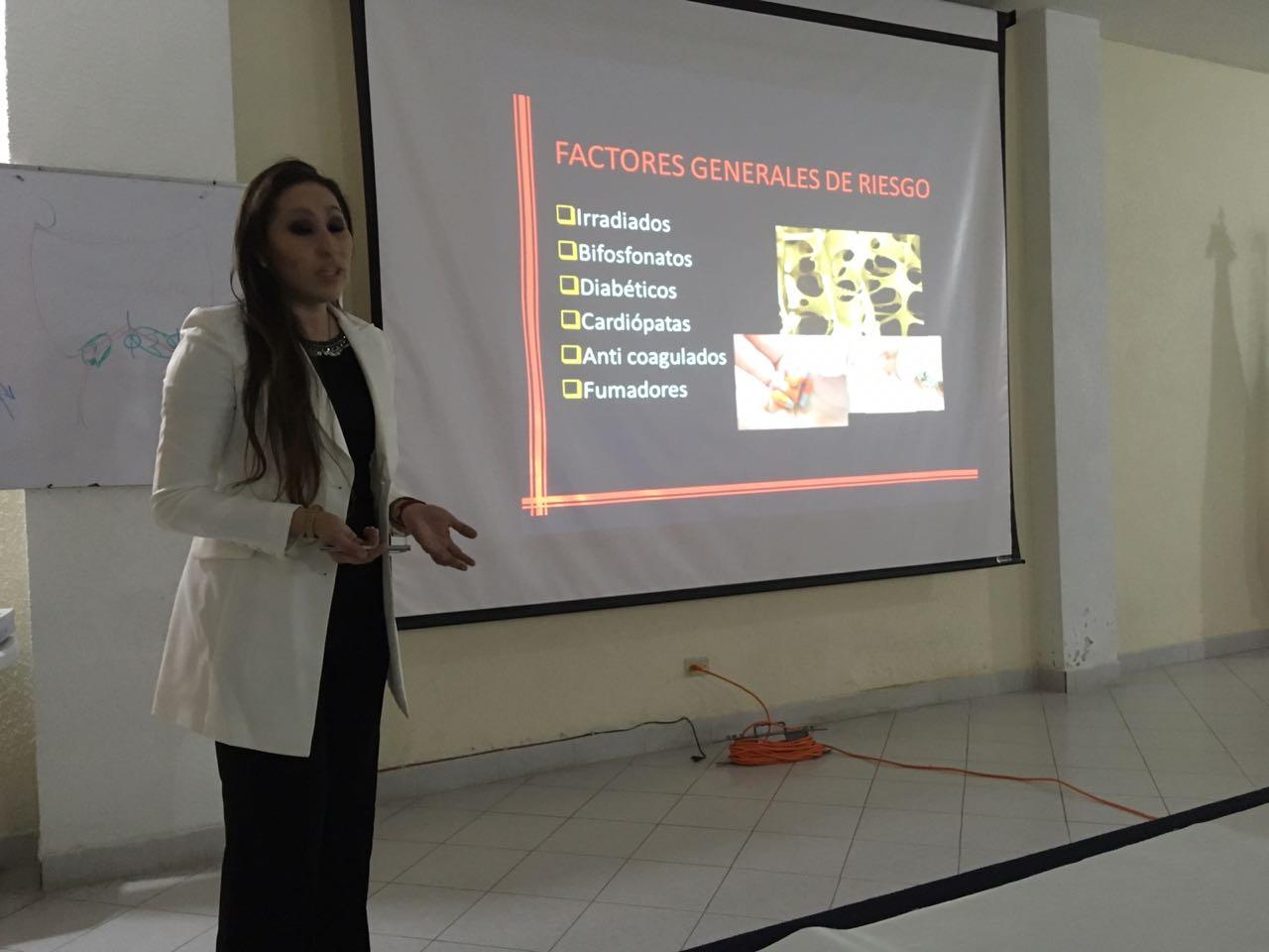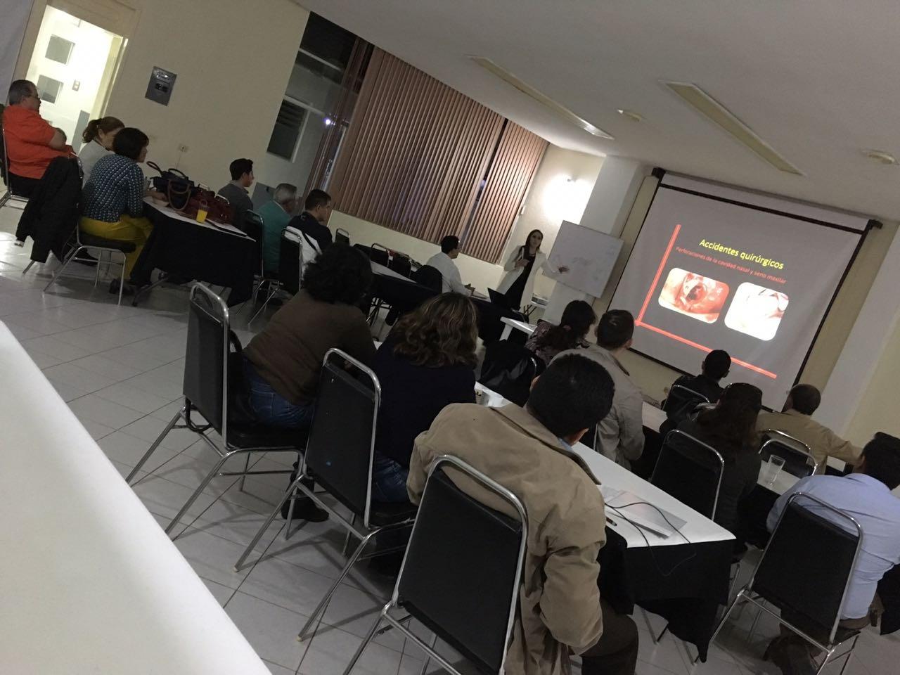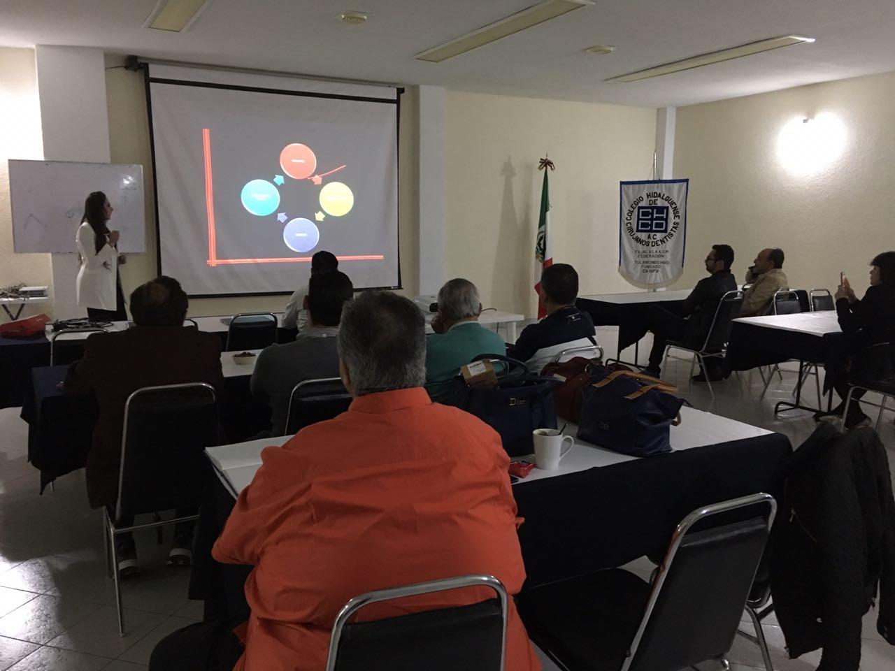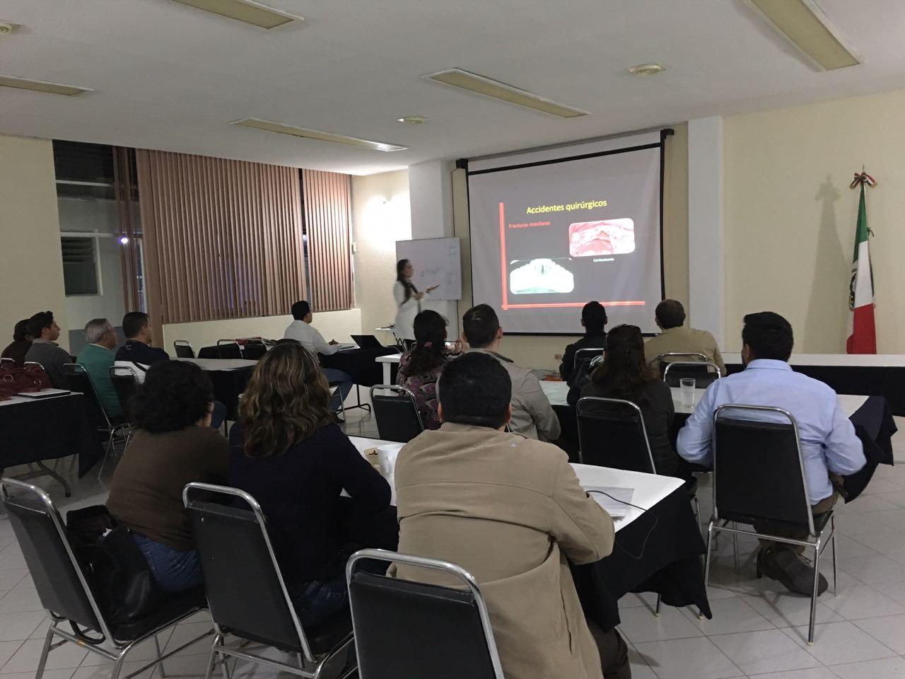 Socios colegiados del CHCD, en Educación Continua, presenciado la conferencia: Complicaciones en la implantología, con la Implantóloga, Claudia Ibeth Villegas Cruz.