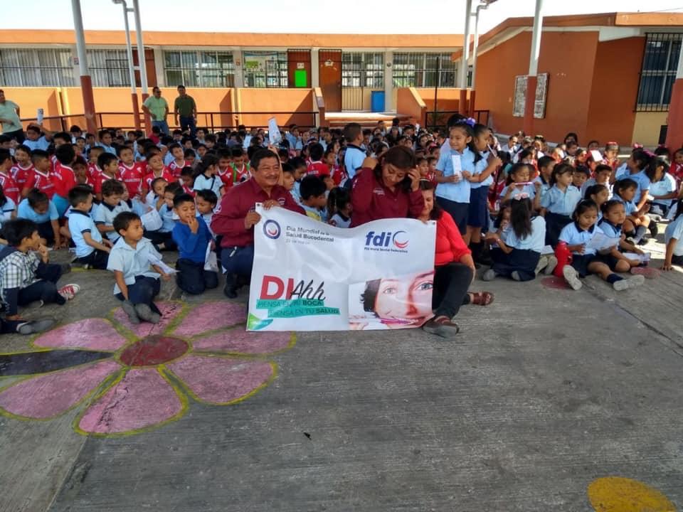 En el marco del Día Mundial de la Salud Bucodental el Colegio de Cirujanos Dentistas de Campeche, AC., lleva a cabo el Programa CEPIDI dando atención a los niños de la Primaria Séptimio Pérez Palacios impartiendo pláticas de técnica de Cepillado para mejorar las sonrisas de los infantes de la localidad. Fundación ADM, felicita y agradece al Colegio de Cirujanos Dentistas de Campeche A.C, al Dr. Enrique Chi Turriza, Presidente e integrantes del CCDC, así como a los docentes y estudiantes de la Facultad de Odontología de la Universidad Autónoma de Campeche que nos acompañaron y a todos los voluntarios adscritos a través del COLEGIO DE CIRUJANOS DENTISTAS DE CAMPECHE A.C.