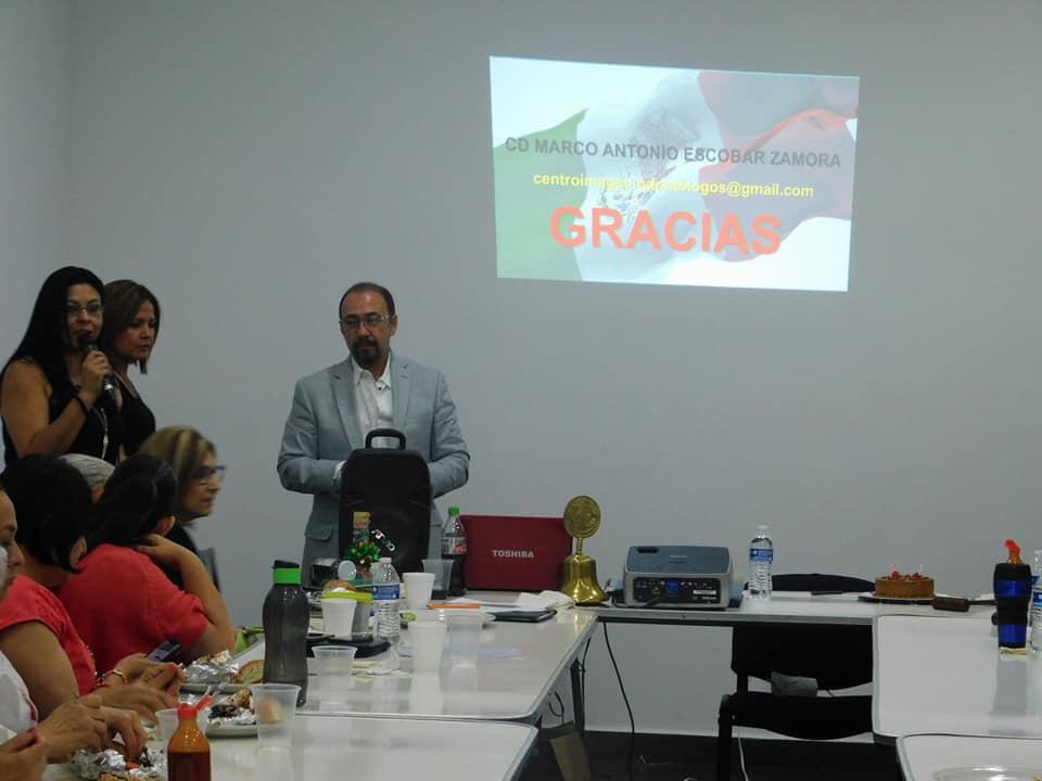 Interesante conferencia sobre el uso de bisfenol y sus consecuencias Impartido por el Dr. Marco Antonio Escobar Zamora. Asamblea, festejo a cumpleañeros del mes y rifa entre colegiados.