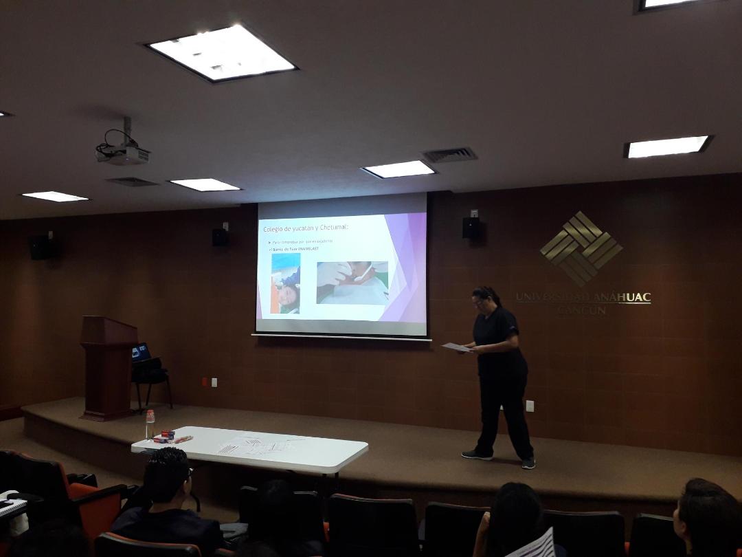 Capacitación a alumnos de primer semestre Escuela Odontología Universidad Anáhuac plantel Cancún. En PSBP y se les invitó también a afiliarse a ADM