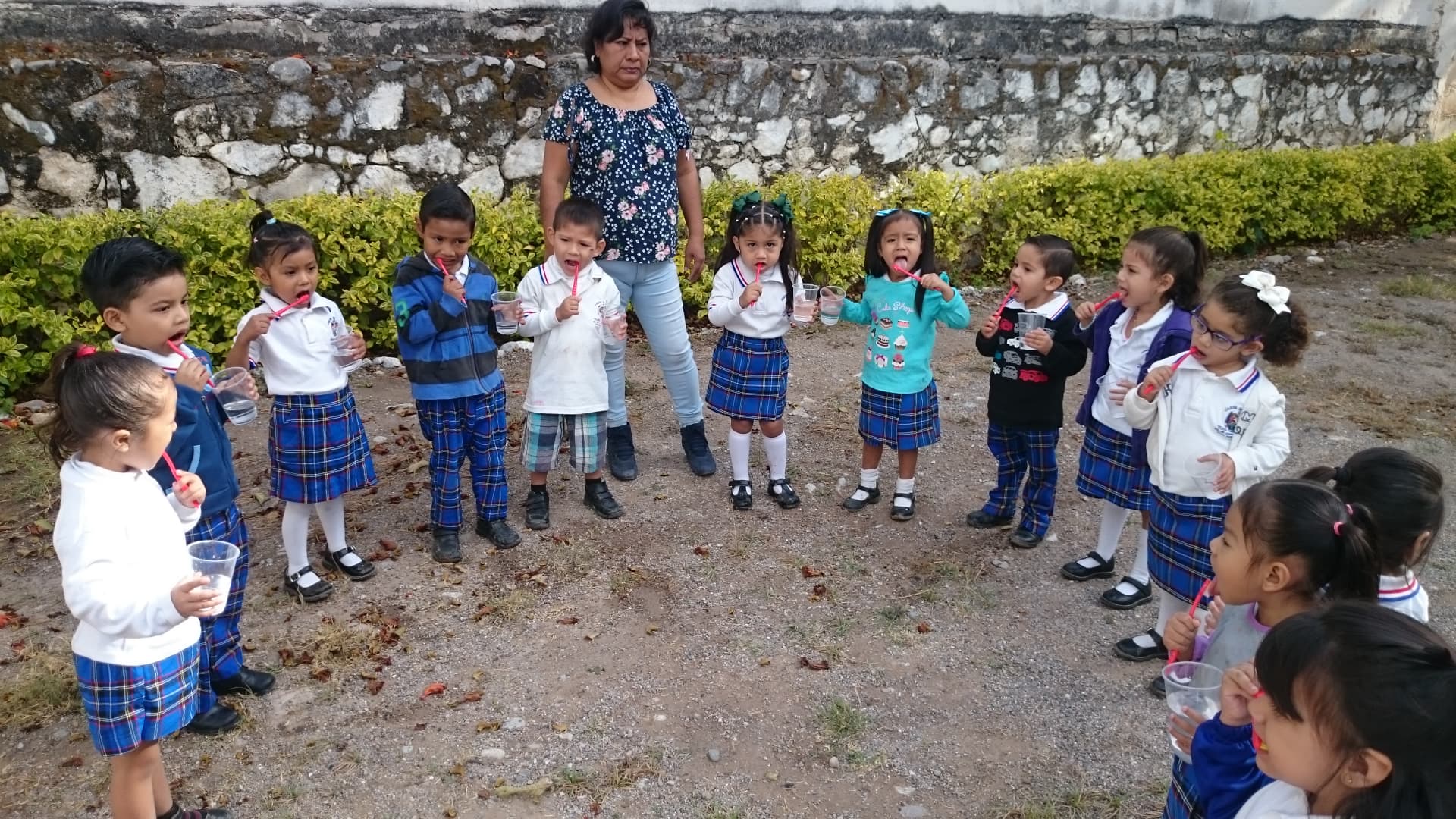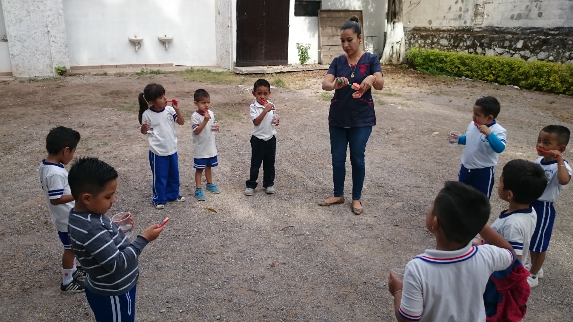 correcta de cepillarse los dientes , después de entregarles cepillos