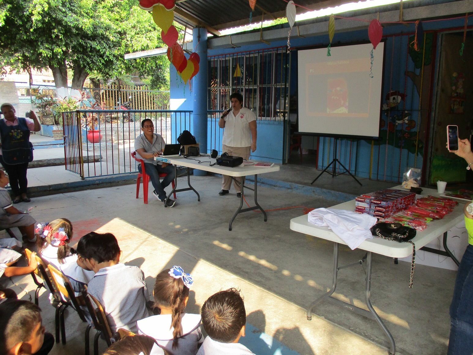 Hoy 17 de abril, en el segundo día de actividades del Colegio de Cirujanos Dentistas del Norte del Estado de Guerrero, A.C. celebrando la semana nacional de salud bucal, asistimos al Jardín de niños "Alborada feliz" de la comunidad de El Tomatal, Gro. las socias Dra. Sheila Hernández , Dra Liz Moreno, Dra Yolanda Moreno y Dra. Margarita Rueda, y el Dr. Antonio Soriano.Les dimos una plática sobre caries y el cuidado de sus dientes, técnica de cepillado, un juego con algunos alimentos sanos y alimentos chatarra; entrega de cepillo y pasta dental para realizar la técnica de cepillado. Al final les entregamos material para que reforzarán lo de los alimentos sanos y los dañinos para sus dientes.