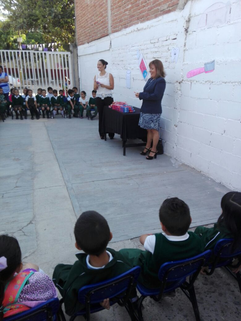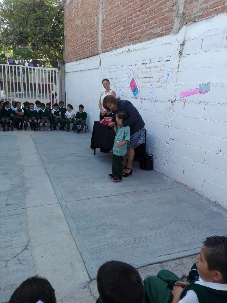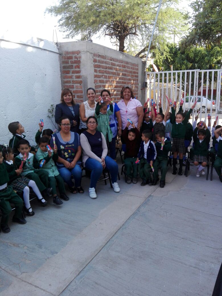 Culminando servicio social en 1a Semana Nacional de Salud Bucal, entregando cepillos y pastas donados por la SEP y Colgate además de dar Técnica de Cepillado en el kinder Diego Velázquez en presencia de la Directora María de la Luz Guadalupe Garduño Gómez. ADL siempre ocupada por promover la salud Bucodental.
